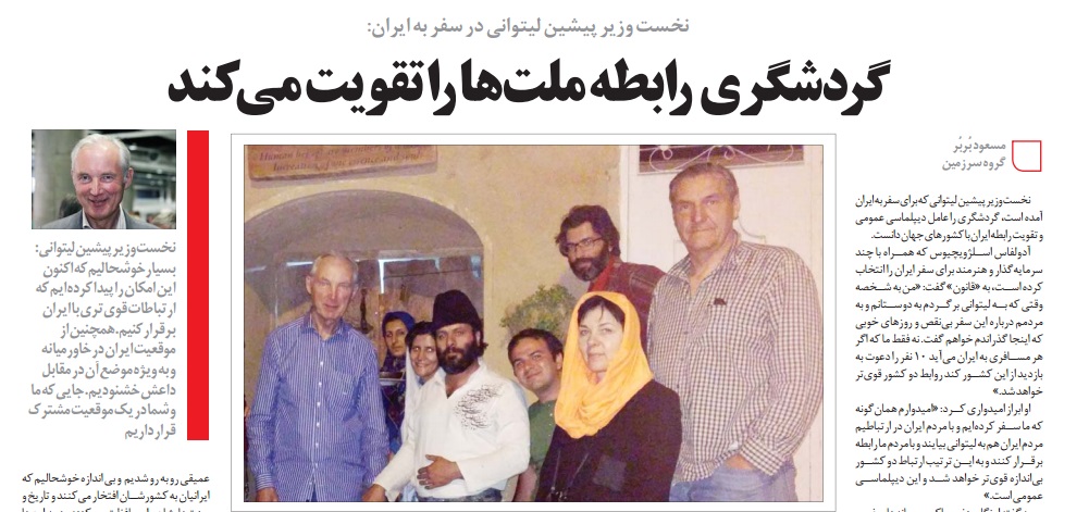 نخست وزیر پیشین لیتوانی در سفر به ایران: گردشگری رابطه ملتها را تقویت میکند بیشتر بخوانید